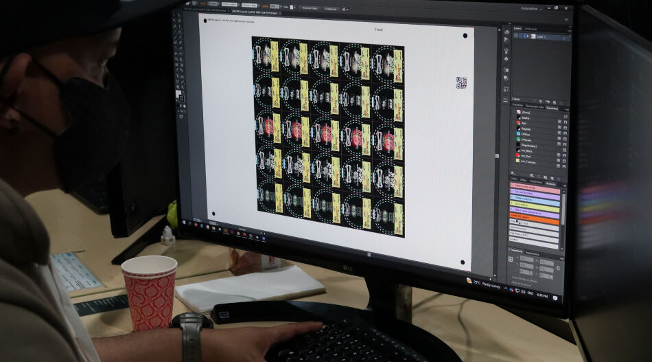During printing, we pull printed examples to review for color alignment, ink density and other quality-ensuring measures. Depending on the product, we then wait for the ink to dry before final cutting.