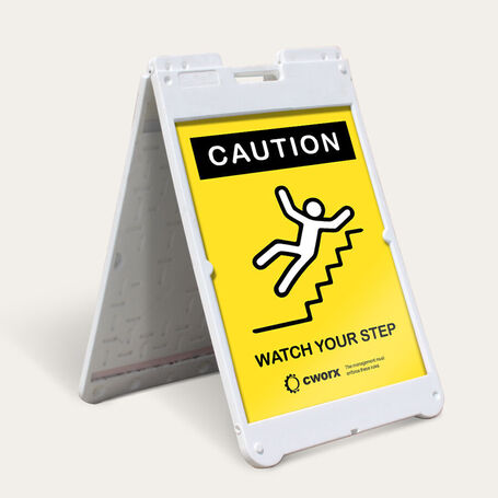 It’s also important to keep other safety measures covered in your business premises. For exit and entry areas, print an A-frame sign that says “Caution! Watch Your Step.” This will ensure important measures that keep people within a safe distance.
